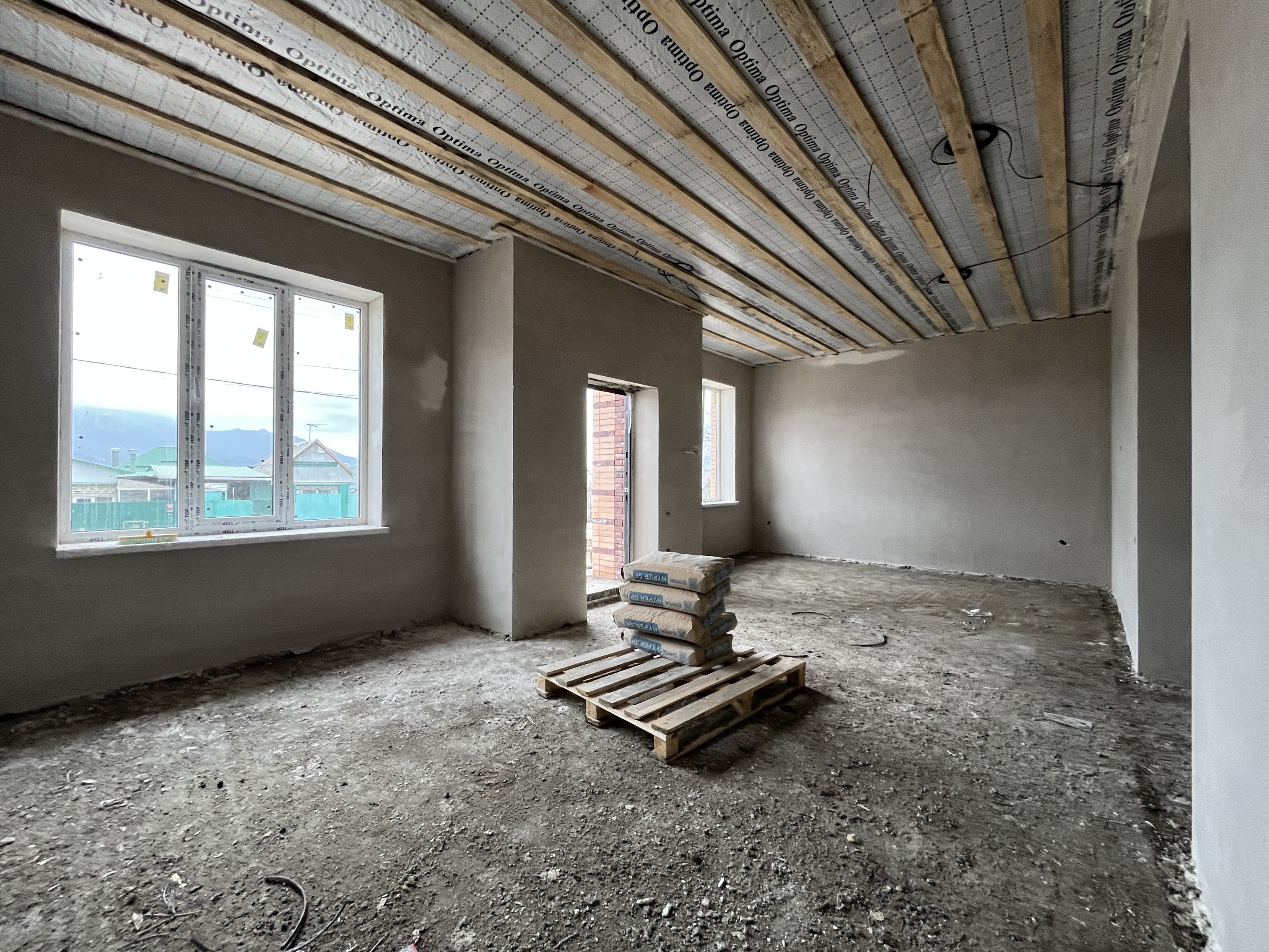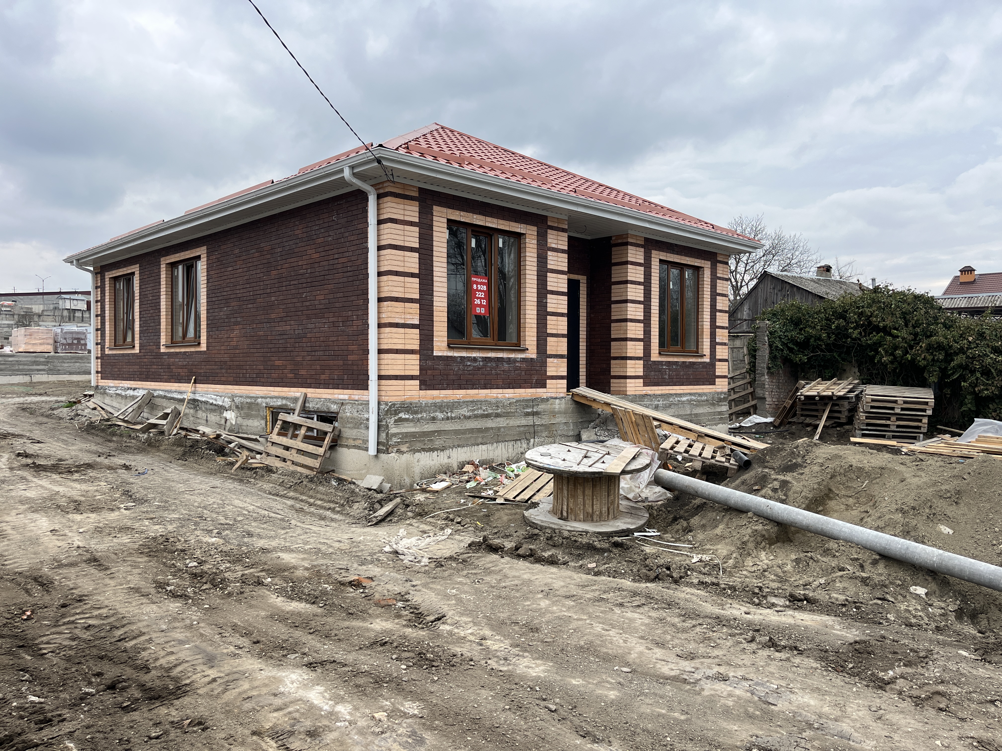 В стоимость дома входит предчистовая отделка, отопление, радиаторы, котел, стяжка внутри дома. Забор по периметру участка и ворота.
