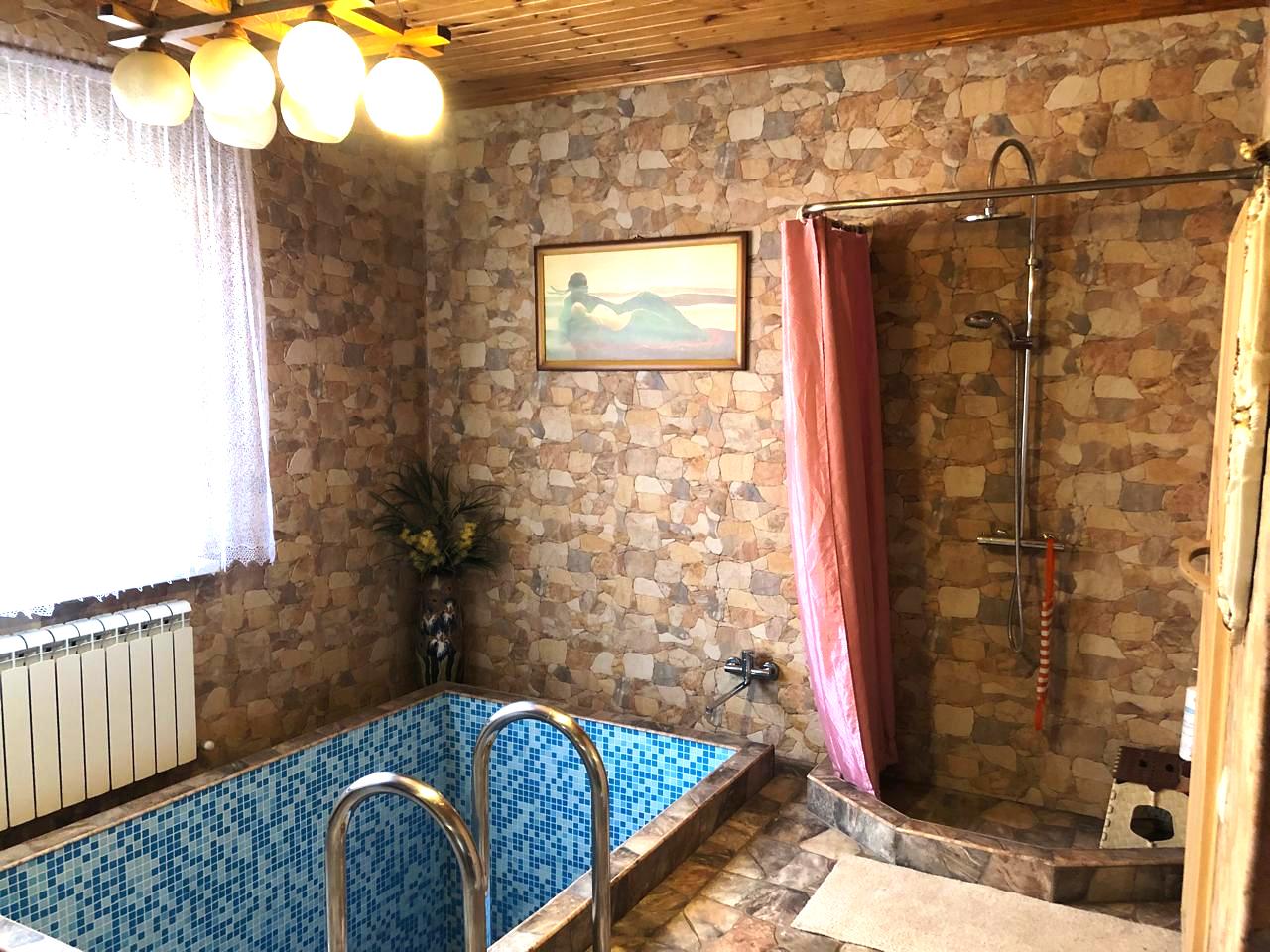 Во втором доме площадью 80м2 - кухня-гостинная, баня, бассейн, кондиционер, гараж, подвальное помещение