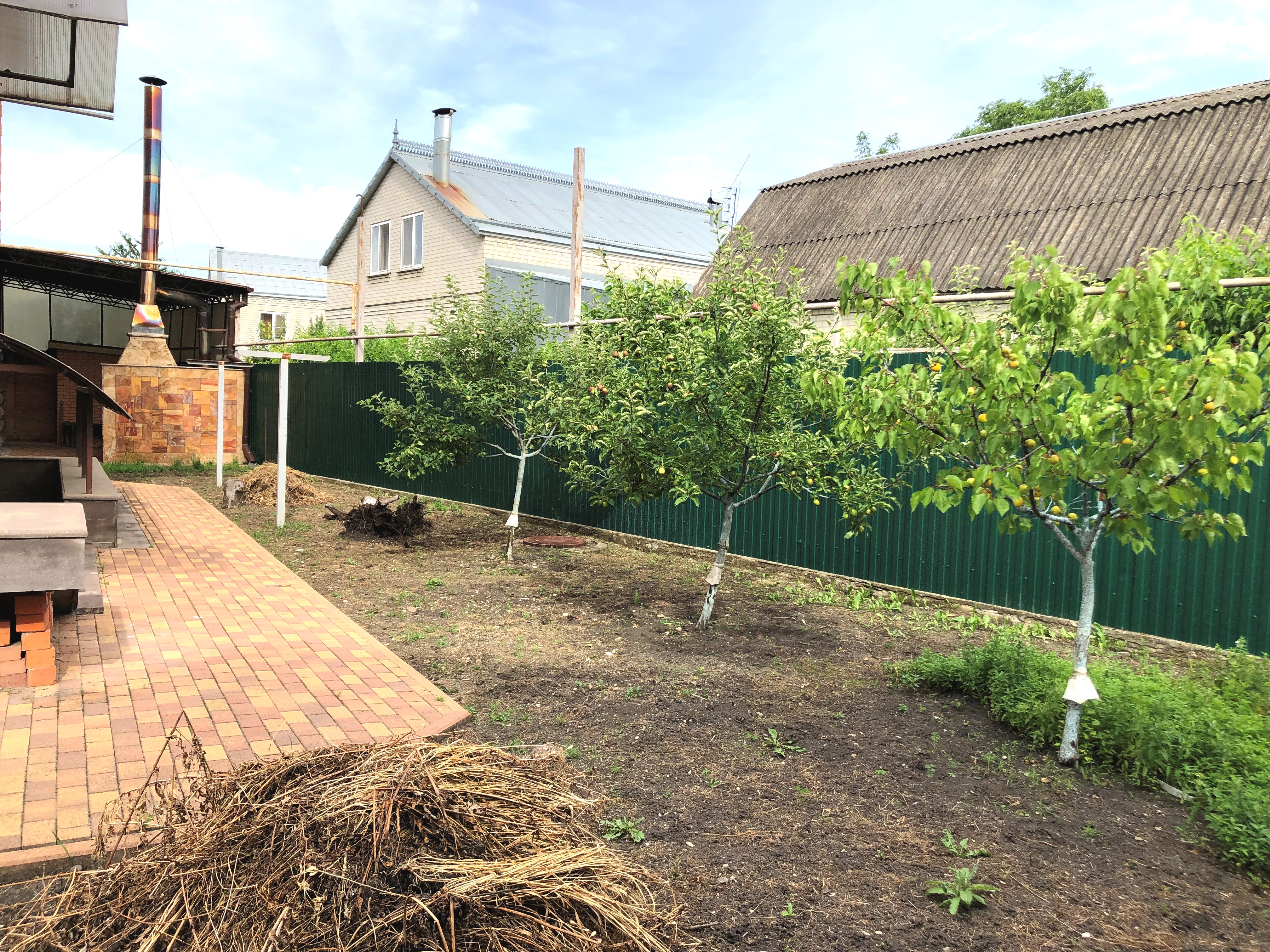 - Участок 8,5 соток (в собственности), навес перед домом, на участке ухоженный сад с плодовыми деревьями, мангальная зона, гараж на две машины, коммуникации центральные, подъезд к дому заасфальтирован