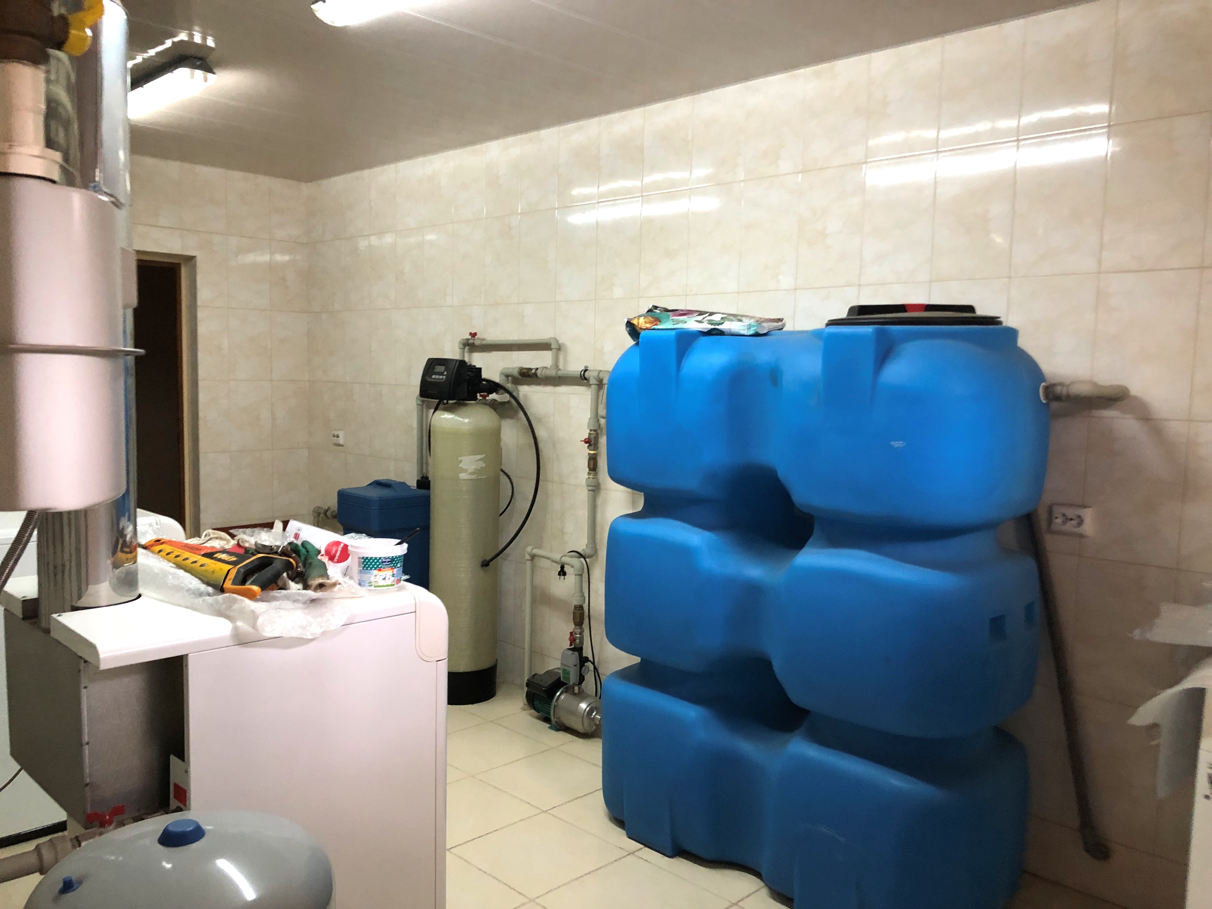 - Двойная гидроизоляция фундамента и цокольного этажа, перекрытие монолитное, каркас крыши из нержавеющего металла, котельная, тройная фильтрация воды