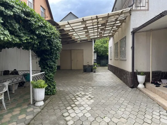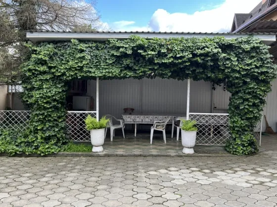 Установлены автоматические ворота, во дворе летняя кухня со всеми коммуникациями, навес, гараж, беседка с мангалом.