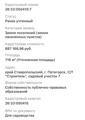 | Кадастровый номер участка | 26:33:050415:7 |