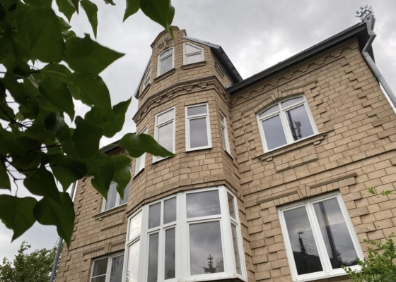 Дом состоит из двух жилых этажей, мансарды и подвала